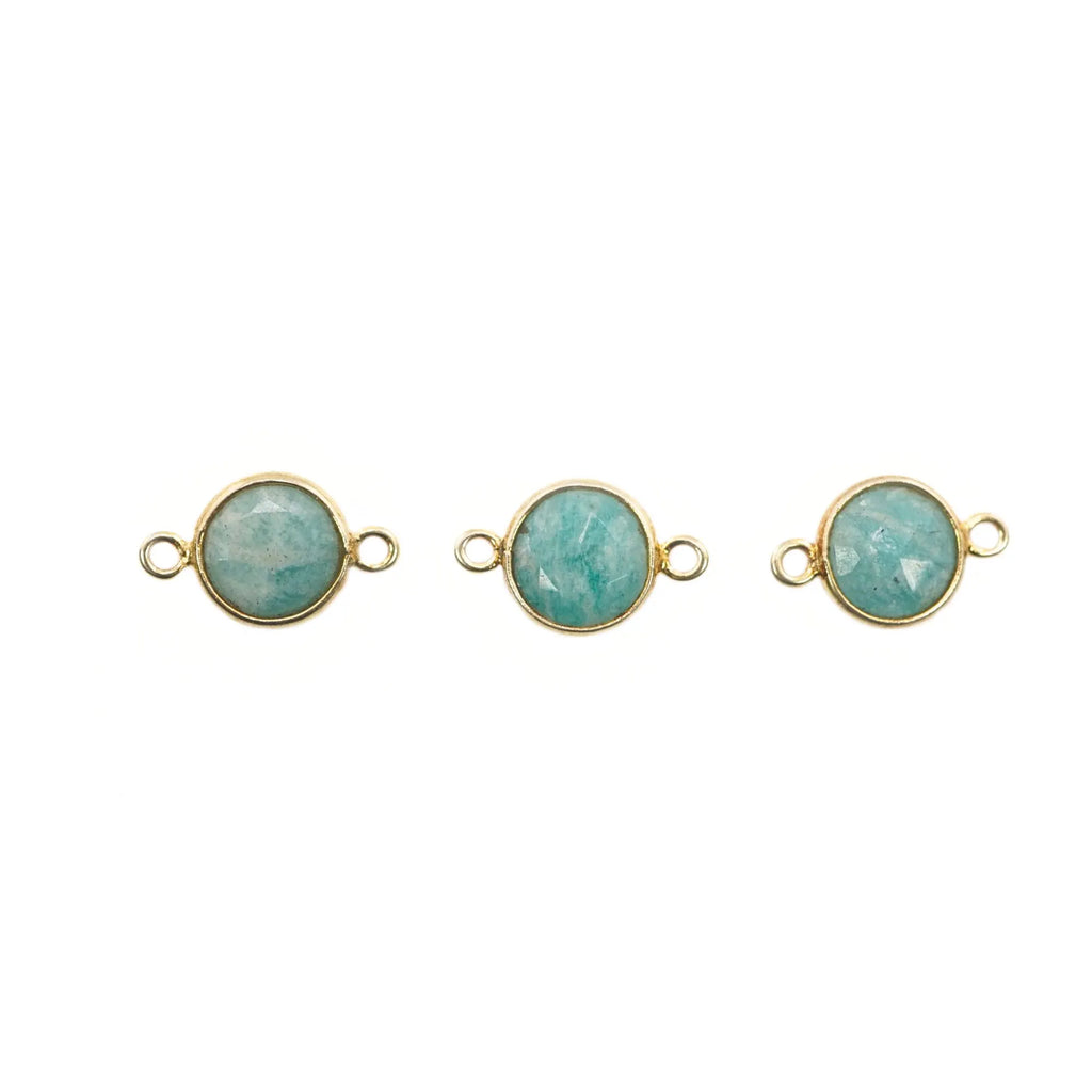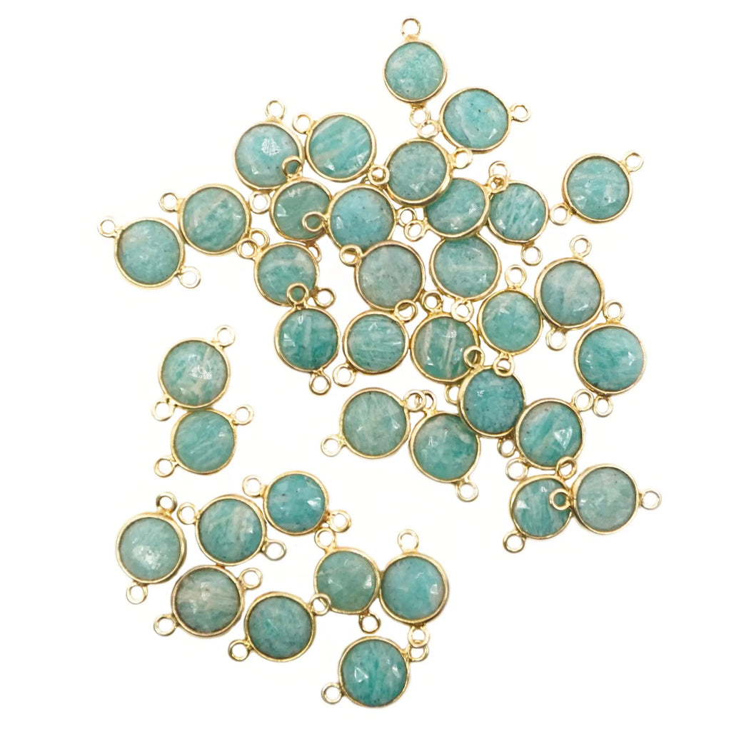 Add a serene touch to your handmade jewelry with the Amazonite Coin Shape Gemstone Connector, crafted in a premium gold plated sterling silver bezel. The soothing blue-green hue of the amazonite gemstone brings calmness and balance to any design. Perfect as a connector for jewelry making, this piece adds sophistication to bracelets, necklaces, or earrings. Each coin charm is meticulously designed to showcase the natural beauty of the amazonite gem, making it a must-have for designers who appreciate both elegance and craftsmanship.