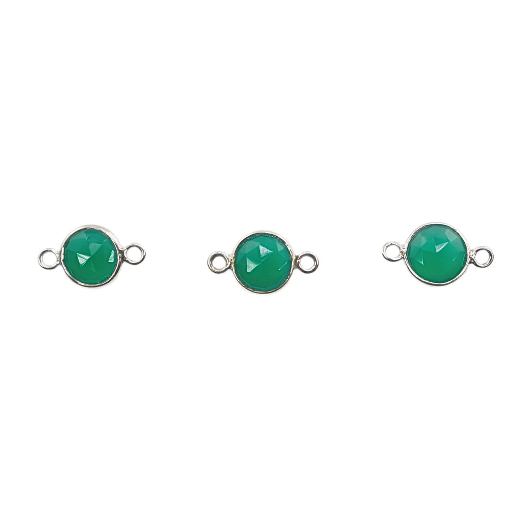 Bring a touch of timeless elegance to your jewelry designs with this Green Onyx Coin Shape Gemstone Connector, beautifully set in a silver-plated sterling silver bezel. The vibrant hue of the onyx gemstone radiates charm and sophistication, making it an ideal accent for necklaces, bracelets, and earrings. Crafted with precision, these sterling silver connectors offer durability along with a polished finish that complements both classic and modern designs. Each charm connector is made to highlight the natural glow of the green onyx gemstone, perfect for artisans and jewelry makers seeking premium quality.