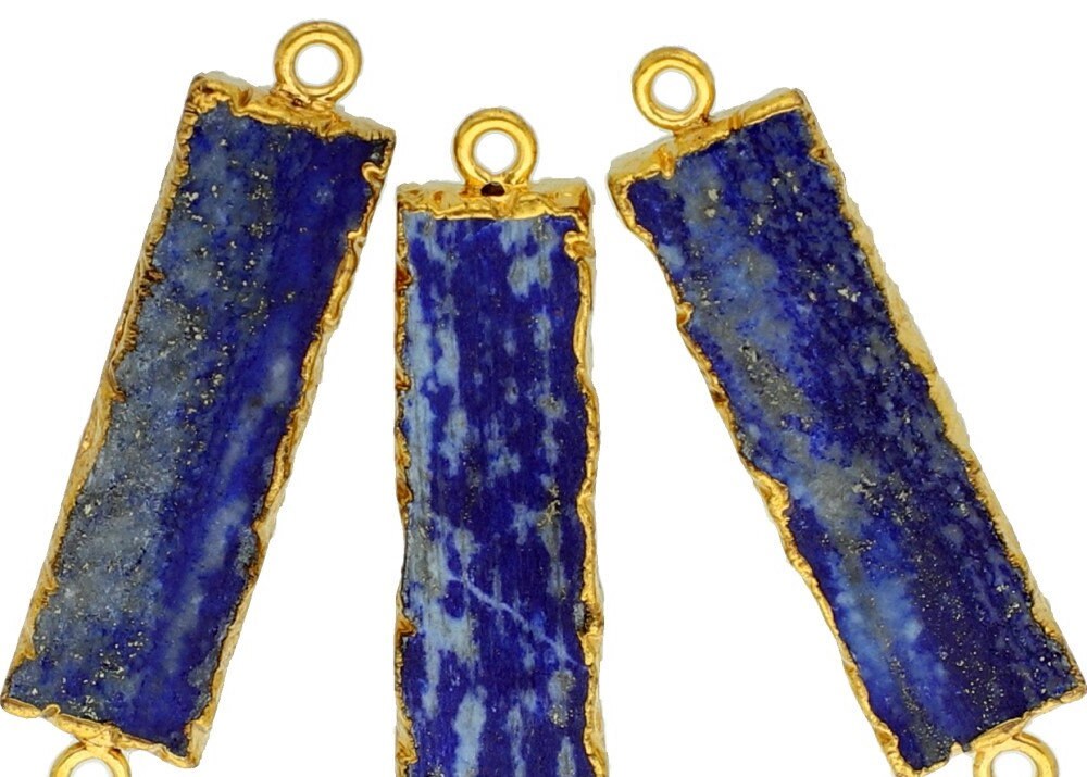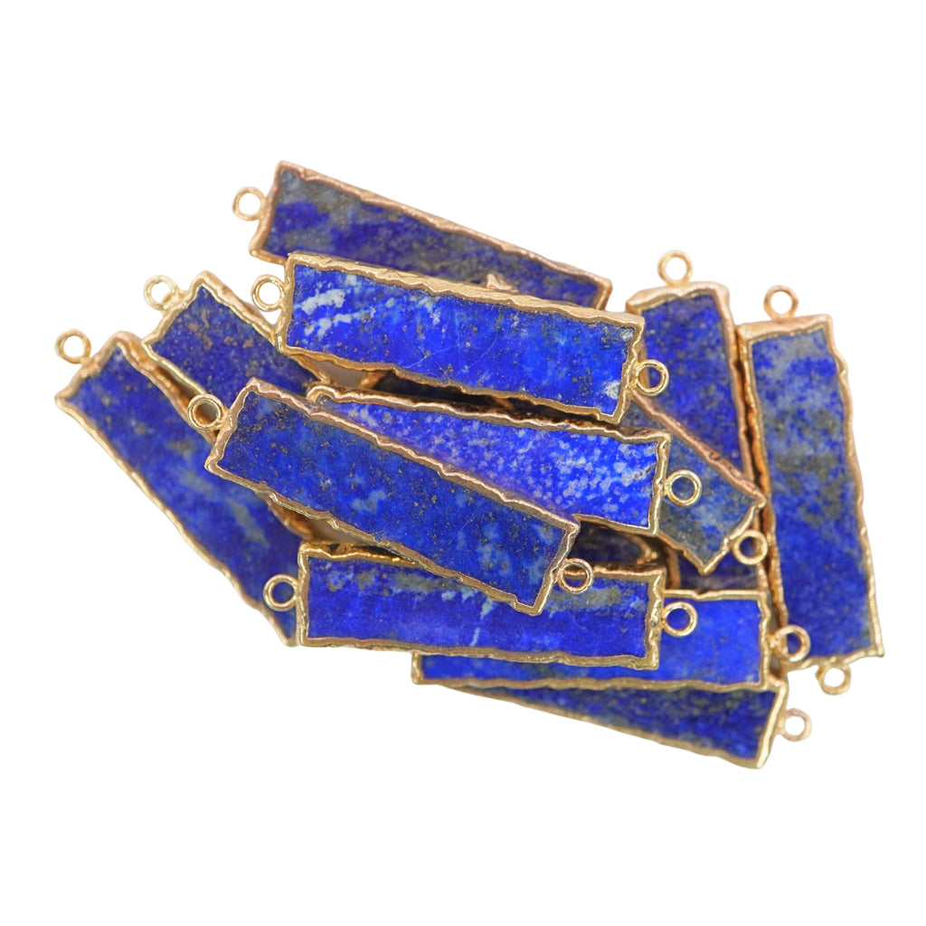 Bring timeless beauty to your designs with this Lapis Lazuli Gemstone Charm Connector, crafted to exude luxury and sophistication. The deep blue hue with natural golden flecks enhances the brilliance of every creation. This gold electroplated rectangle connector offers both durability and charm, ideal for necklaces, bracelets, or earrings. Perfect for designers seeking elegance, this Lapis Lazuli charm adds a touch of celestial allure to handmade jewelry pieces.