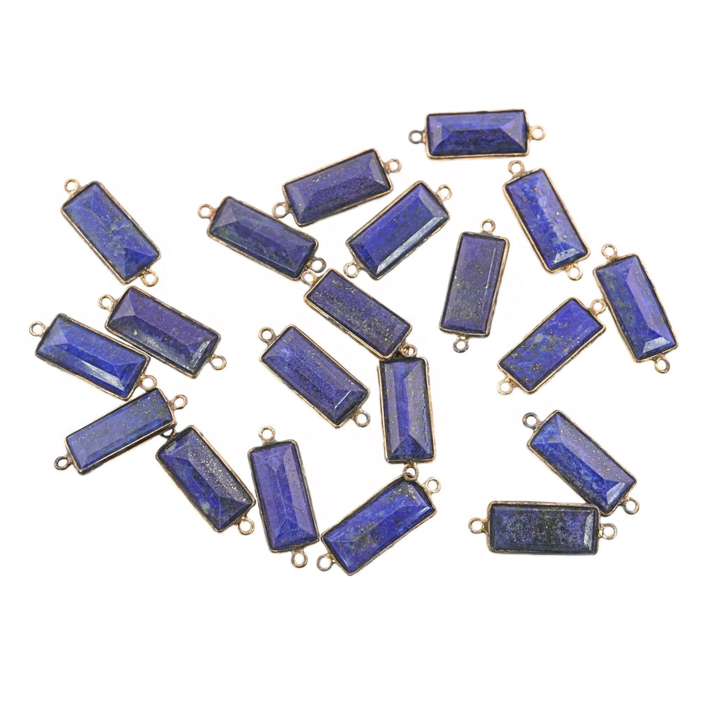 Embrace the royal charm of Lapis Lazuli gemstone with this exquisite rectangle connector. Set in a gold-plated sterling silver bezel, it showcases the deep blue beauty and natural flecks that make lapis lazuli charms so captivating. Perfect as a charm connector for bracelets, earrings, or necklaces, this piece combines luxury with durability for lasting brilliance. Its fine craftsmanship adds sophistication to every jewelry design, reflecting elegance in every detail.