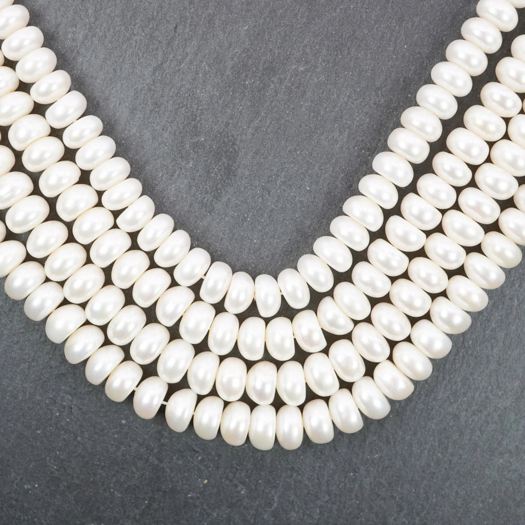 White Button Freshwater Pearls Beads Strand 5.5 X 8 MM