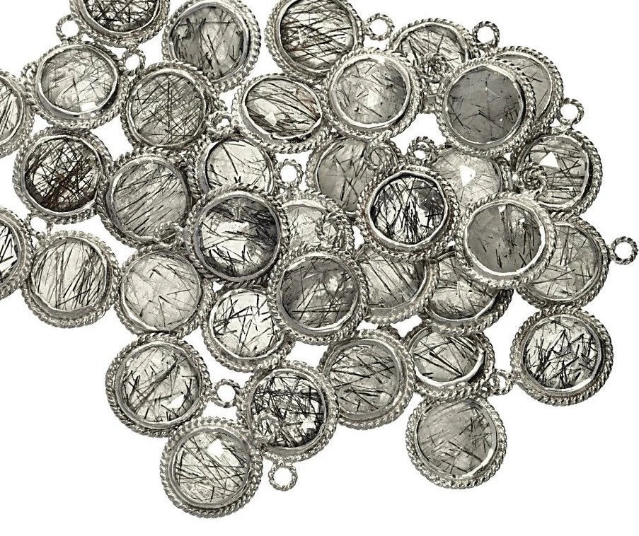 This Tourmaline Quartz Pendant in a coin shape combines elegance with versatility. Crafted with a sterling silver bezel, it showcases the natural sparkle of tourmaline quartz while providing durability. Perfect for necklaces, bracelets, or charm designs, this coin pendant adds sophistication to any jewelry piece. Its classic design makes it a timeless addition for artisans, designers, and gemstone enthusiasts. Enhance your creations with this exquisite tourmaline pendant for unique and stylish jewelry.